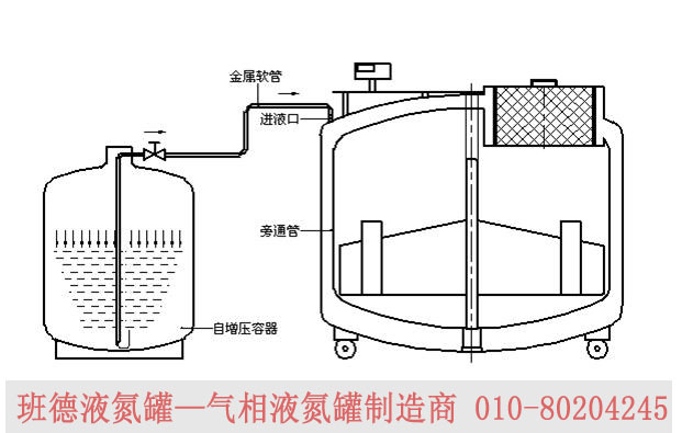 补给罐与气相液氮罐之间采用法兰真空软管柔性连接